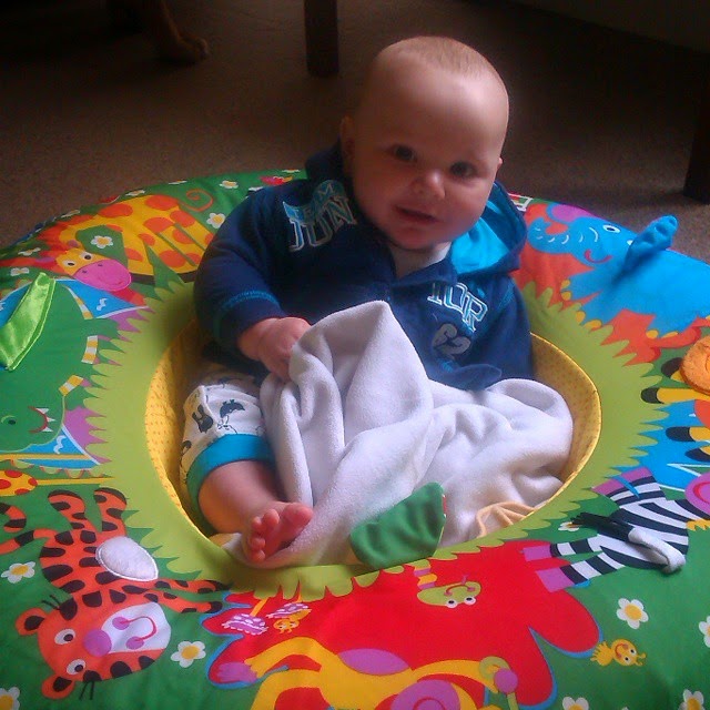 Noah is now approaching 20 weeks old. He is becoming more of a character each day, he wants to be involved and the center of things, although still growing he does seem to have slowed down a little, he has instead focused on finding new tricks to entertain us, he giggles and chuckles away loudly when his big brother tickles his toes or his big sister blows raspeberries on his tummy, he can roll over confidentally and grasps at everything in his reach!
